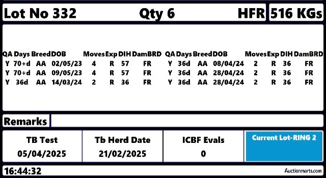 Wednesday 10 Dec, Ring 1, Cows, Bulls, Sucklers , Bullocks & Hfrs, Intake 9am, Start 10:30