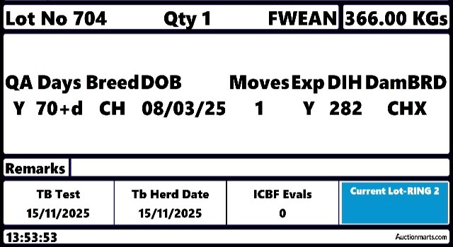 Monday 12 Jan, Ring 1, Calves, Runners & Weanlings, Start 00:00
