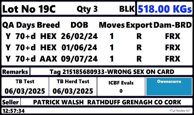 Wednesday 11 Feb, Ring 3, Calves , Intake 8.00, Start 12:00