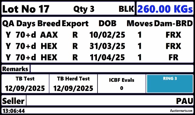 Thursday 5 Feb, Ring 2, Calf Sale, Intake 9am, Viewing 10am to 11.30am, Start 12:00