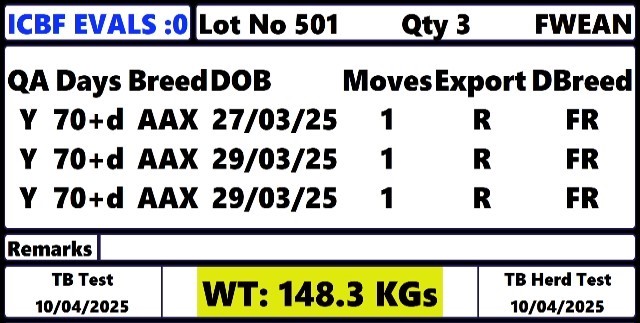 Tuesday 23 Dec, Ring 1, Calves & Weanlings every TUESDAY @7.00pm, Start 19:00