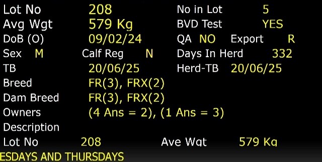 Thursday 11 Dec, Ring 1, General cattle (Incl Dairy), Intake 9.30 TO 11.00, Viewing 10 TO 11.00, Start 11:30