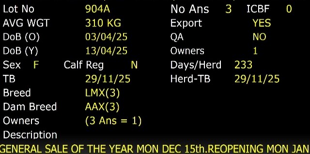 Monday 8 Dec, Ring 1, Weanlings,Bullocks,Heifers, Intake 7.30AM ONWARDS, Start 11:00