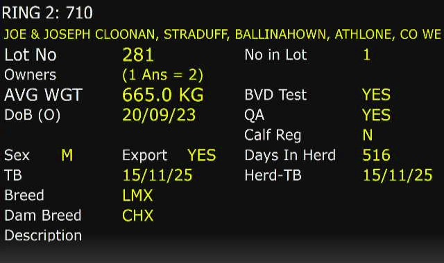 Monday 8 Dec, Ring 2, WEANLING HEIFERS, Intake 2.00pm to 4.00pm, Viewing 3.00pm to 5.00pm, Start 17:30