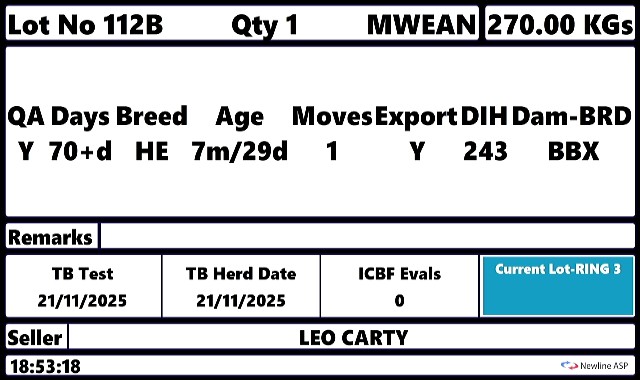 Saturday 6 Dec, Ring 3, CALF SALE, Intake 7.00 AM, Viewing 9.30 AM, Start 10:00