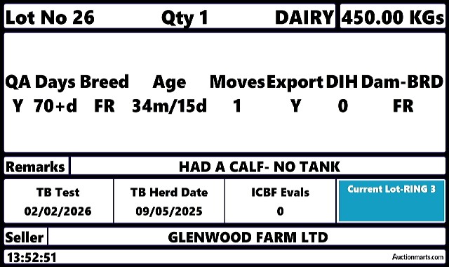Saturday 7 Feb, Ring 3, CALF SALE, Intake 7.00 AM, Viewing 9.30 AM, Start 10:00