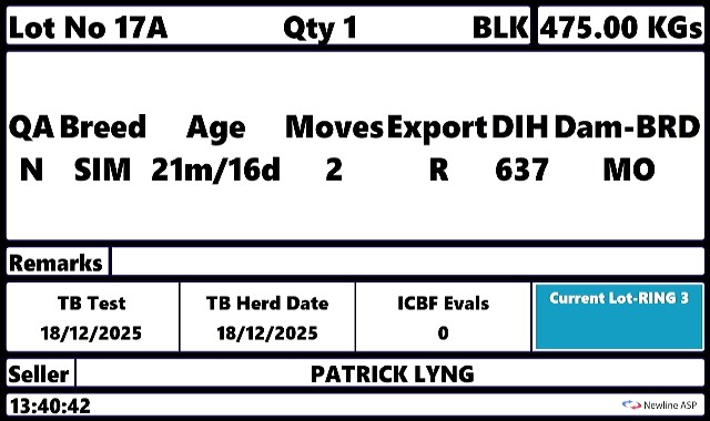 Saturday 14 Feb, Ring 1, GENERAL CATTLE SALE, Intake 7.00 AM, Viewing 8.30 AM, Start 09:00